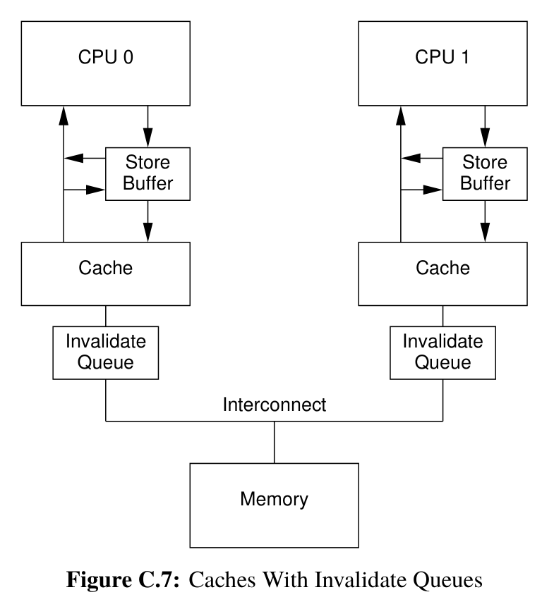但是 CPU 设计者不满足于这样的等待, 于是他们又引入了两层缓存, 即 Store Buffer 和 Invalidate Queue.