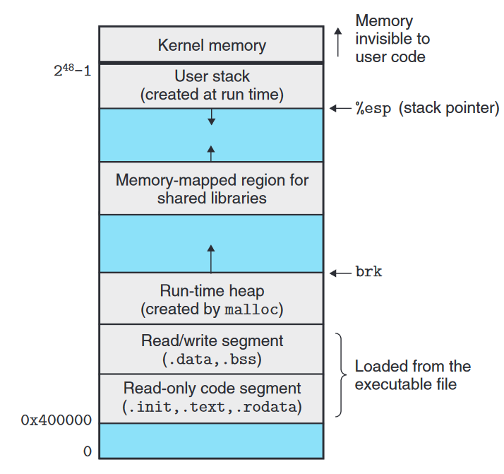 每个 Linux 程序都有一个如下图所示的运行时内存映像: