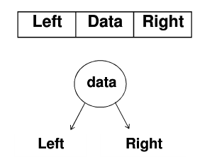 将节点设计成如图样式,内部储存节点数据和指向左右子节点的指针。