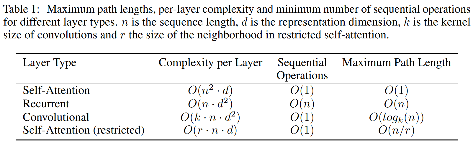 [@Vaswani2017a] 总结的上述三点的对比如下: