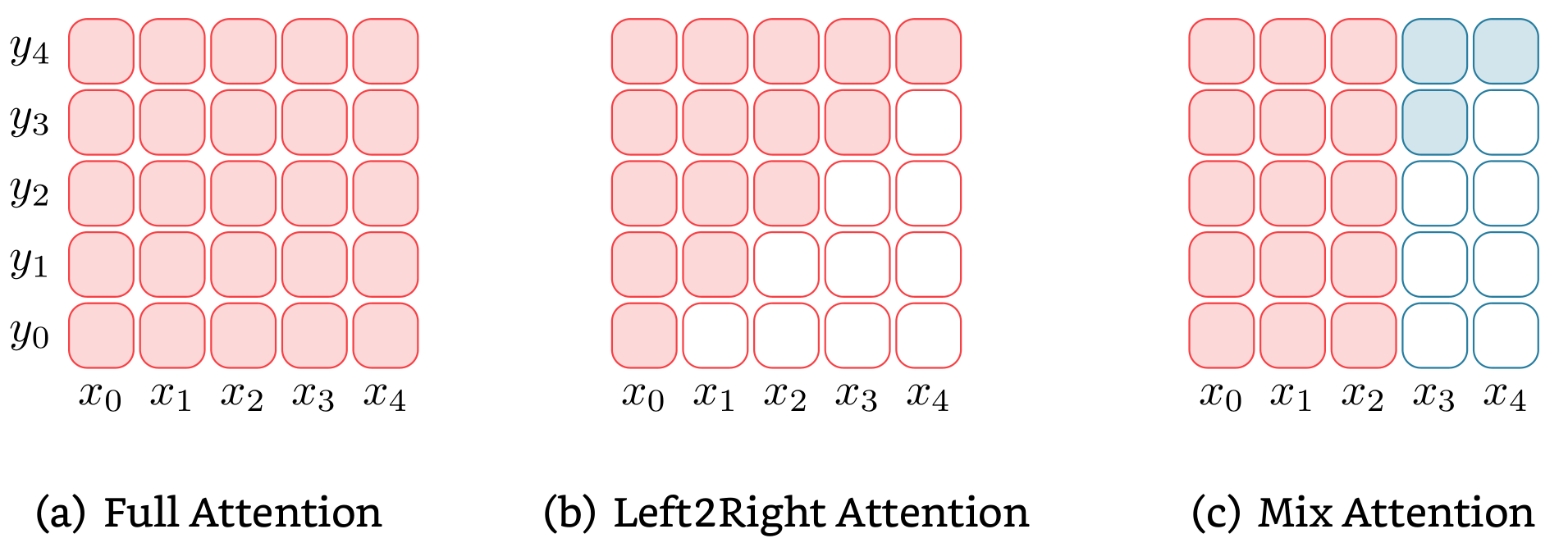 其中 X\mathbf{X} 是输入序列,X^\hat{\mathbf{X}} 是原始文本序列经过噪音函数后的文本序列 X^=fnoise(X)\hat{\mathbf{X}} = f_\text{noise}(\mathbf{X})m(X)m(\mathbf{X}) 是输入序列中受损的部分。