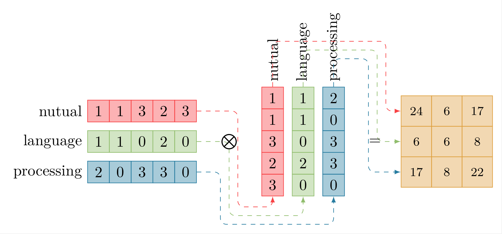1. XX=[x1x2xL][x1,x2,,xL]=[x1x1x1x2x1xLx2x1x2x2x2xLxLx1xLx2xLxL]RL×L\begin{aligned} \mathbf{XX}^\top &= \left[\begin{matrix} \mathbf{x}_1\\ \mathbf{x}_2\\ \vdots\\ \mathbf{x}_L \end{matrix}\right]\cdot [\mathbf{x}_1^\top, \mathbf{x}_2^\top, \cdots, \mathbf{x}_L^\top]\\ &=\left[\begin{matrix} &\mathbf{x}_1\mathbf{x}_1^\top &\mathbf{x}_1\mathbf{x}_2^\top &\cdots &\mathbf{x}_1\mathbf{x}_L^\top\\ &\mathbf{x}_2\mathbf{x}_1^\top &\mathbf{x}_2\mathbf{x}_2^\top &\cdots &\mathbf{x}_2\mathbf{x}_L^\top\\ &\vdots &\vdots &\ddots &\vdots\\ &\mathbf{x}_L\mathbf{x}_1^\top &\mathbf{x}_L\mathbf{x}_2^\top &\cdots &\mathbf{x}_L\mathbf{x}_L^\top \end{matrix}\right]\\ &\in\mathbb{R}^{L\times L} \end{aligned}