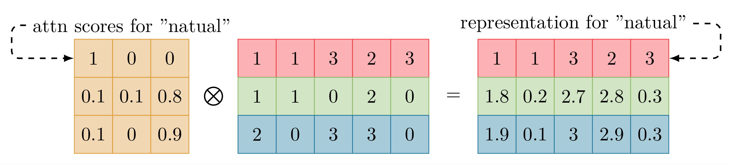 其中 dkd_k 是模型维度,HRL×dk\mathbf{H}\in\mathbb{R}^{L\times d_k} 是输出表征的拼接矩阵,即:hi=H[i,:] for i[1,L]\mathbf{h}_i = \mathbf{H}[i, :]\text{ for }i\in[1, L]